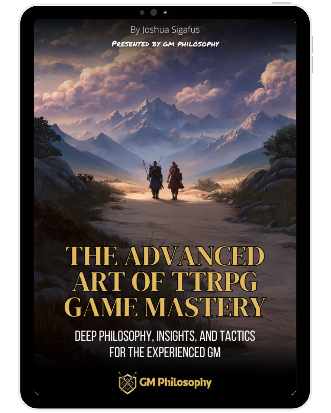 This ebook was written out of a love for TTRPGs, and a deep-held belief that they can actually become powerful, evocative works of intellectual ephemeral art that totally have the power to transcend the status of 'game' to become something deeper and more meaningful.